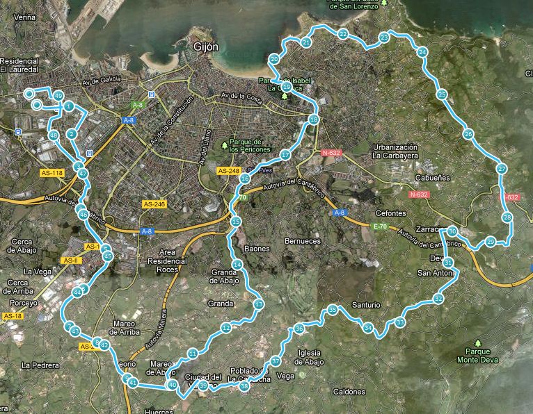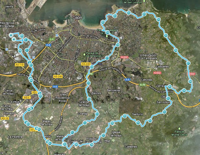 Pues aprovechando que la ruta prevista para hoy estaba suspendida y aunque un servidor pretendía hacerla en solitario, debido a un error humano(osea mio) me equivoque de apeadero a la hora de coger el tren y lo perdí, así que decidí quedarme por Gijon y hacer esta ruta.