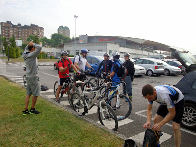Ruta conjunta con los XoveBtt que son quienes la organizaron ya que ellos la hacen desde hace unos años.Iniciamos cogiendo el tren hacia Oviedo (estación de LLamaquique) desde donde nos dirigimos hacia el Parque de Invierno para comenzar la ruta en dirección a la senda de la Fusa,Trubia, Proaza donde haremos la primera parada con 35 km a cuestas y 1:45 de tiempo, de ahí a la senda de oso y dirección Teverga donde pica todo para arriba y sera donde comamos,en el restaurante la Chabola, en la Plaza. Reponemos fuerzas y tras avituallar de agua en una fuente cercana comenzamos la vuelta hacia Oviedo por donde vinimos pero esta vez para abajo y bajamos como aviones hasta Trubia donde las vejigas dicen basta y hacemos una "paradiña" para evacuar líquidos, de ahí ya hacia Oviedo y vuelta a la estación para coger el tren.